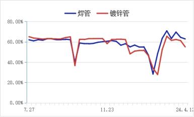 津冀區域管廠焊鍍管產能利用率走勢圖