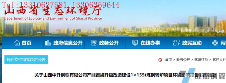 報(bào)批的申請(qǐng)》(中升申字〔2021〕72號(hào))、省生態(tài)環(huán)境保護(hù)服務(wù)中心《關(guān)于山西中升鋼鐵有限公司產(chǎn)能置換升級(jí)改造建設(shè)1×155t煉鋼轉(zhuǎn)爐項(xiàng)目環(huán)境影響報(bào)告書(shū)的評(píng)估報(bào)告》(晉環(huán)服務(wù)">