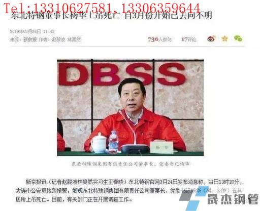 免責聲明:本網站(山東聊城晟杰無縫鋼管廠m.51pvc.cn)刊載的“東北特鋼到底是被誰搞垮的?”等均源于網絡,版權歸原作者所有,且僅代表原作者觀點,本文所載信息僅供參考。轉載僅為學習與交流之目的,如無意中侵犯您的合法權益,請及時聯系刪除。本網站刊登此篇文章并不意味著本站贊同其觀點或證實其內容的真實性,我們不對其科學性、嚴肅性等作任何形式的保證。如果侵犯了您的版權,請盡快聯系我們予以撤銷,謝謝合作!