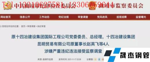 據曲靖市監委消息:原十四冶建設集團國際工程公司黨委委員、總經理,十四冶建設集團昆明貿易有限公司原董事長趙英飛涉嫌嚴重違紀違法,經云南省監委指定曲靖市監委管轄,曲靖市監委指定會澤縣監委管轄,目前正在接受會澤縣監委監察調查。