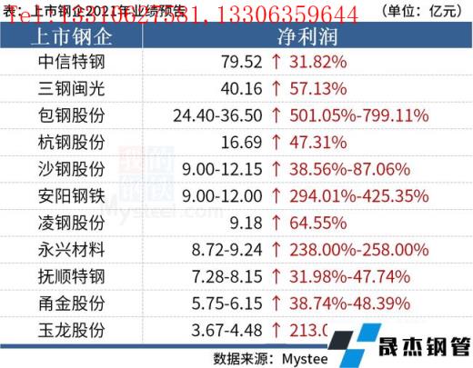 免責聲明:本網站(山東聊城晟杰無縫鋼管廠m.51pvc.cn)刊載的“2021年鋼企利潤創新高,中信特鋼實現凈利近80億”等均源于網絡,版權歸原作者所有,且僅代表原作者觀點,本文所載信息僅供參考。轉載僅為學習與交流之目的,如無意中侵犯您的合法權益,請及時聯系刪除。本網站刊登此篇文章并不意味著本站贊同其觀點或證實其內容的真實性,我們不對其科學性、嚴肅性等作任何形式的保證。如果侵犯了您的版權,請盡快聯系我們予以撤銷,謝謝合作!