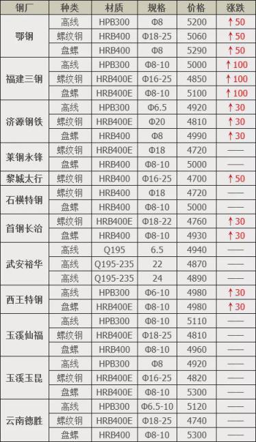 上調(diào)6家,占比50%,調(diào)價(jià)幅度30-100元/噸;