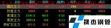 今日螺紋主力期貨漲74,收?qǐng)?bào)4955,漲幅1.52%;熱卷主力漲36,收?qǐng)?bào)5069,漲幅0.72%;焦煤主力跌60.5,收?qǐng)?bào)2341.5,跌幅2.52%;焦炭主力跌4,收?qǐng)?bào)3083,跌幅0.13%;鐵礦石主力漲25.5,收?qǐng)?bào)821.5,跌幅3.2%。