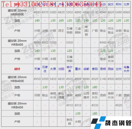 免責聲明:本網站(山東聊城晟杰無縫鋼管廠m.51pvc.cn)刊載的“2月14日全國鋼材_無縫鋼管實時價格!”等均源于網絡,版權歸原作者所有,且僅代表原作者觀點,本文所載信息僅供參考。轉載僅為學習與交流之目的,如無意中侵犯您的合法權益,請及時聯系刪除。本網站刊登此篇文章并不意味著本站贊同其觀點或證實其內容的真實性,我們不對其科學性、嚴肅性等作任何形式的保證。如果侵犯了您的版權,請盡快聯系我們予以撤銷,謝謝合作!