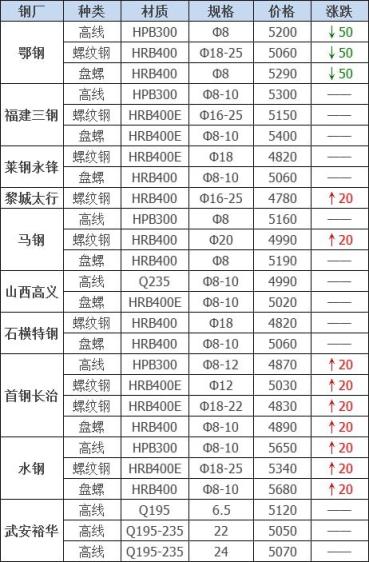 下調(diào)6家,占比54.5%,調(diào)價(jià)幅度20-100元/噸;