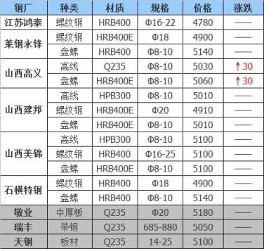 22日江陰興澄特鋼開始正常收貨,鋼板料3990,工角槽3880-3850,剪料3810-3710,普爐料3650-3550以上均為含稅價(jià),聯(lián)系電話金敏13815123456。疫情期間外地車輛進(jìn)江陰請牢記注意事項(xiàng)。
