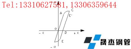 如圖8-8,顯示包辛格效應(yīng)時(shí),所得到的應(yīng)力變形曲線的例子,拉伸時(shí)材料的原始屈服應(yīng)力在A點(diǎn),若對(duì)此材料進(jìn)行壓縮時(shí),其屈服應(yīng)力也與它相近(在點(diǎn)線的B點(diǎn)),以同樣的試樣使其受載荷超過A點(diǎn)而至C點(diǎn),卸載后將沿CD線返回至D,若在此時(shí)對(duì)它施以壓縮負(fù)荷,則開始塑性變形將在E點(diǎn),E點(diǎn)的應(yīng)力明顯地比原來受壓縮材料在B點(diǎn)屈服應(yīng)力低,這個(gè)效應(yīng)是可逆的,若原試樣經(jīng)塑性壓縮再拉伸時(shí),同樣發(fā)生屈服應(yīng)力降低的現(xiàn)象。