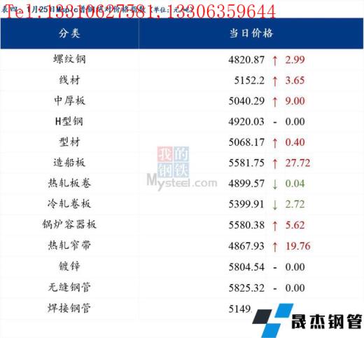 1月25日Myspic普鋼絕對(duì)價(jià)格指數(shù)變化:綜合指數(shù)5041.97,上漲3.92;螺紋鋼指數(shù)4820.87,上漲2.99;線材指數(shù)5152.2,上漲3.65;熱軋板卷指數(shù)4899.57,下跌0.04;冷軋板卷指數(shù)5399.91,下跌2.72;中厚板指數(shù)5040.29,上漲9.0。