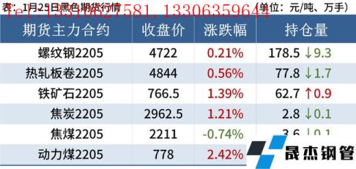 熱軋板卷:1月25日,全國(guó)24個(gè)主要城市4.75mm熱軋板卷均價(jià)4910元/噸,較上個(gè)交易日下跌3元/噸。現(xiàn)貨市場(chǎng)目前大部分商家已經(jīng)放假,僅有部分央國(guó)企商家值班,市場(chǎng)整體無(wú)成交,部分市場(chǎng)小幅調(diào)整,市場(chǎng)成交很差。臨近春節(jié),大多貿(mào)易商以收尾工作為主,市場(chǎng)運(yùn)輸也暫時(shí)受阻,部分公司已提前放假封庫(kù),幾乎無(wú)成交,目前熱軋板卷價(jià)格以穩(wěn)為主,缺乏上漲動(dòng)力。綜合來(lái)看,預(yù)計(jì)26日熱軋板卷價(jià)格震蕩運(yùn)行。