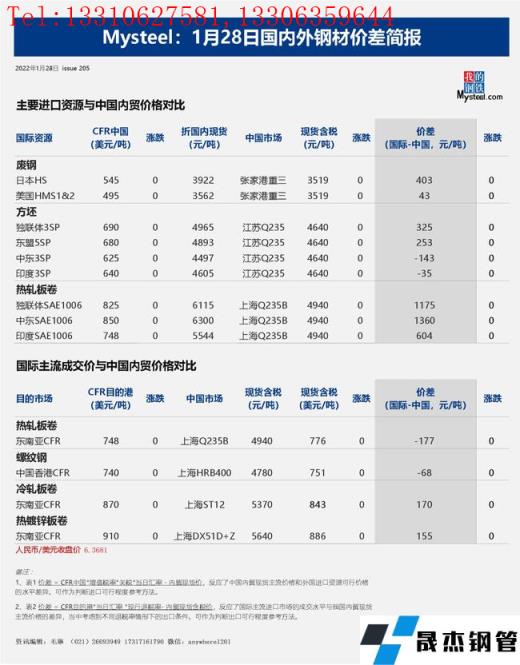 免責聲明:本網站(山東聊城晟杰無縫鋼管廠m.51pvc.cn)刊載的“2022年01月28日日報:國內外鋼材_無縫鋼管價差匯總(2022.1.28)”等均源于網絡,版權歸原作者所有,且僅代表原作者觀點,本文所載信息僅供參考。轉載僅為學習與交流之目的,如無意中侵犯您的合法權益,請及時聯系刪除。本網站刊登此篇文章并不意味著本站贊同其觀點或證實其內容的真實性,我們不對其科學性、嚴肅性等作任何形式的保證。如果侵犯了您的版權,請盡快聯系我們予以撤銷,謝謝合作!