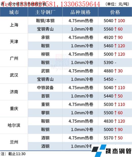 ◎上海:7日早盤熱卷市場(chǎng)價(jià)格漲100,現(xiàn)主流報(bào)價(jià)1500普5020-5040元/噸,1800報(bào)5060-5090元/噸;1500錳5150元/噸,1800報(bào)5200元/噸左右,2.75Q235B報(bào)5130-5160元/噸,2.75SPHC報(bào)5250元/噸左右。(單位:元/噸)