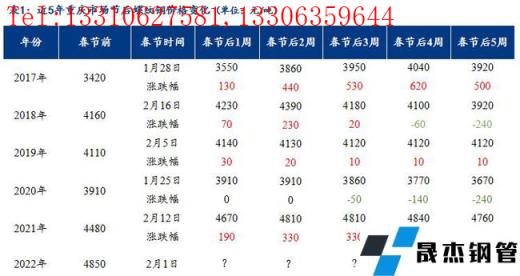 免責聲明:本網站(山東聊城晟杰無縫鋼管廠m.51pvc.cn)刊載的“近5年春節前后重慶螺紋鋼價格和庫存走勢”等均源于網絡,版權歸原作者所有,且僅代表原作者觀點,本文所載信息僅供參考。轉載僅為學習與交流之目的,如無意中侵犯您的合法權益,請及時聯系刪除。本網站刊登此篇文章并不意味著本站贊同其觀點或證實其內容的真實性,我們不對其科學性、嚴肅性等作任何形式的保證。如果侵犯了您的版權,請盡快聯系我們予以撤銷,謝謝合作!