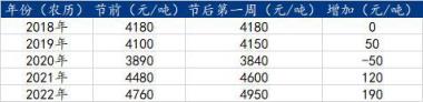 表二:近幾年福建春節(jié)前后螺紋價(jià)格情況
