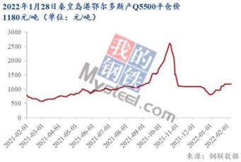 在印尼煤炭出口禁令助推市場看多情緒之下,去年12月觀望等待動力煤港口價格下跌至700元/噸基準(zhǔn)價的下游采購和貿(mào)易商一擁而上,紛紛加入搶購大軍。不僅如此,由于今年節(jié)前補庫窗口期短、冬奧會電廠補庫和港口倒掛等利多因素發(fā)酵,秦港Q5500動力煤價格一改12月加速下滑的頹勢,在1月初開始強力反彈,截至1月28日秦皇島港鄂爾多斯產(chǎn)Q5500動力煤平倉價1180元/噸,較上月底增長47.5%,價格曲線也走出了深V趨勢。