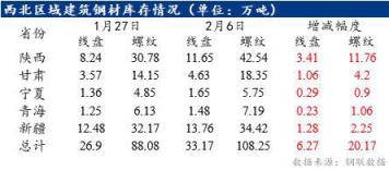 截至到2月6日,據不完全統計,西北區域社會總庫存約在141.42萬噸,與節前(1月27日)相比,周環比增加26.44萬噸。分區域來看,陜西、新疆和甘肅區域社庫分別增加15.17萬噸、3.53萬噸和5.26萬噸,而寧夏和青海區域社庫則增幅較少,分別增加1.19萬噸和1.29萬噸。