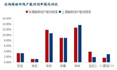 截止2月09日,統(tǒng)計(jì)全國242條廢鋼破碎線開工情況,廢鋼破碎線產(chǎn)能利用率為7.83%,較上周增0.37%,廢鋼破碎線產(chǎn)能利用率水平較上周小增。全國區(qū)域?qū)Ρ瓤?,華北、東北、華南地區(qū)破碎線產(chǎn)能利用率較上周持平,華東地區(qū)破碎線產(chǎn)能利用率較上周增1.18%,華中地區(qū)破碎線產(chǎn)能利用率較上周降0.98%,西北地區(qū)破碎線產(chǎn)能利用率較上周增1.93%,西南地區(qū)破碎線產(chǎn)能利用率較上周降1.34%。