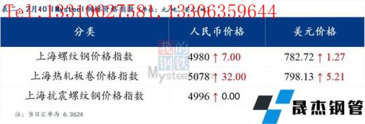 免責聲明:本網站(山東聊城晟杰無縫鋼管廠m.51pvc.cn)刊載的“2022年02月10日日報:鋼材_無縫鋼管價格指數上漲6.36元/噸”等均源于網絡,版權歸原作者所有,且僅代表原作者觀點,本文所載信息僅供參考。轉載僅為學習與交流之目的,如無意中侵犯您的合法權益,請及時聯系刪除。本網站刊登此篇文章并不意味著本站贊同其觀點或證實其內容的真實性,我們不對其科學性、嚴肅性等作任何形式的保證。如果侵犯了您的版權,請盡快聯系我們予以撤銷,謝謝合作!