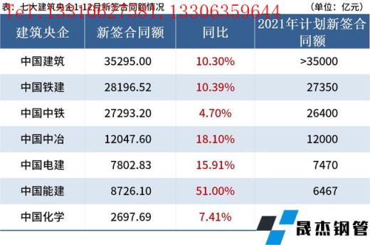 免責(zé)聲明:本網(wǎng)站(山東聊城晟杰無縫鋼管廠m.51pvc.cn)刊載的“7家建筑央企2021年新簽合同總額超12萬億元,同比增長12%”等均源于網(wǎng)絡(luò),版權(quán)歸原作者所有,且僅代表原作者觀點(diǎn),本文所載信息僅供參考。轉(zhuǎn)載僅為學(xué)習(xí)與交流之目的,如無意中侵犯您的合法權(quán)益,請及時(shí)聯(lián)系刪除。本網(wǎng)站刊登此篇文章并不意味著本站贊同其觀點(diǎn)或證實(shí)其內(nèi)容的真實(shí)性,我們不對其科學(xué)性、嚴(yán)肅性等作任何形式的保證。如果侵犯了您的版權(quán),請盡快聯(lián)系我們予以撤銷,謝謝合作!