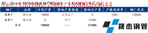 2、湖北省建材無縫厚壁鋼管廠家螺紋鋼日產(chǎn)量1.88萬噸,周環(huán)比增加0.16噸。檢修/限產(chǎn)影響建材日產(chǎn)量為2.74萬噸,產(chǎn)能利用率41%,周環(huán)比增加4%。