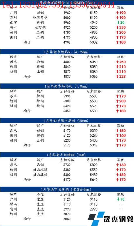 一、1月華南地區鋼價整體上行