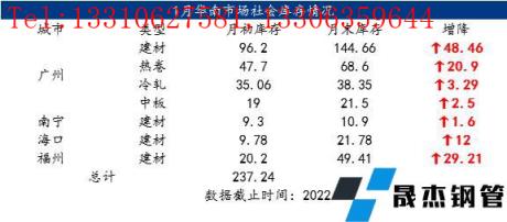 二、華南地區厚壁無縫鋼管庫存明顯增加