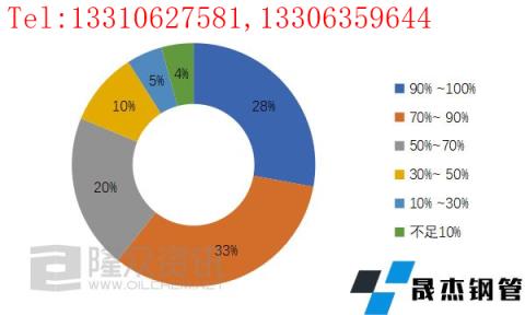 本次調(diào)研期間企業(yè)產(chǎn)能利用率略有下降。參與調(diào)研樣本企業(yè)中,產(chǎn)能利用率90%-100%占比為28%,較上年度下降5個(gè)百分點(diǎn);。產(chǎn)能利用率70%-90%的企業(yè)占比33%,持平;產(chǎn)能利用率不足50%的企業(yè)占比合計(jì)19%,上升了4個(gè)百分點(diǎn)。