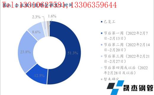 分行業來看,終端銷售樣本企業中,60.6%的企業目前已經完全復工,節后第二周內能夠復工的樣本企業占比可以達到89.1%,主要由于今年節前冬儲備貨情況整體較少,節后開門紅的行情走勢下,很多企業提前復工,積極入市詢價采購,以爭取利潤最大化。工程建筑樣本企業中,39.7%的企業目前已經完成復工,節后第二周內能夠復工的樣本企業占比可以達到85.6%,整體進度情況也要好于往年同期水平。僅0.9%的工程建筑企業和2.1%的終端銷售企業暫未有明確的復工時間,主要是受疫情以及冬奧會的影響。