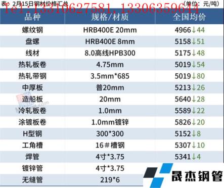 熱軋板卷:2月15日,全國24個主要城市4.75mm熱軋板卷均價5019元/噸,較上個交易日價格下跌54元/噸。現貨市場早盤報價小幅走弱,跌后市場成交乏力,加之現貨成交不佳,午后現貨價格繼續下跌。從目前情況來看,前期邏輯低庫存低供應雖然還在,但原料端雙焦和鐵礦的走弱,對市場的影響均大于基本面影響,導致了現貨回調。綜合來看,預計16日熱軋板卷價格或將弱勢震蕩運行。