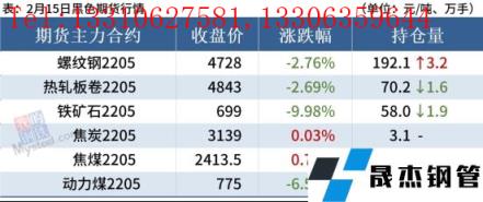 焦炭:2月15日,焦炭市場弱穩運行,唐山個別無縫厚壁鋼管廠家焦炭提降200元/噸,主流地區暫無回應,市場多觀望為主。本周焦企開工率有所下降,焦企多保持低庫存運行,考慮當前焦化普遍處于虧損狀態,且后續存在復產預期,焦企抵觸情緒進一步強化。無縫厚壁鋼管廠家掉庫情況明顯,部分低庫存無縫厚壁鋼管廠家已經開始補庫,采購情緒積極,考慮冬奧會結束部分無縫厚壁鋼管廠家有復產預期,市場情緒稍有好轉,預計短期內焦炭市場穩中偏弱運行。