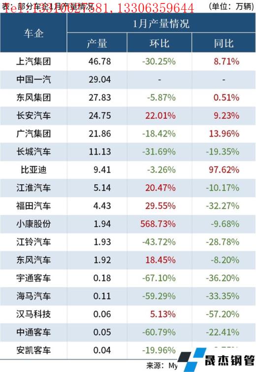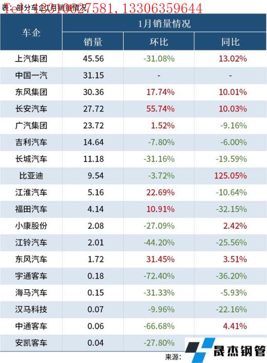 免責聲明:本網站(山東聊城晟杰無縫鋼管廠m.51pvc.cn)刊載的“1月我國汽車產銷降幅明顯,多數車企呈現雙位數下跌”等均源于網絡,版權歸原作者所有,且僅代表原作者觀點,本文所載信息僅供參考。轉載僅為學習與交流之目的,如無意中侵犯您的合法權益,請及時聯系刪除。本網站刊登此篇文章并不意味著本站贊同其觀點或證實其內容的真實性,我們不對其科學性、嚴肅性等作任何形式的保證。如果侵犯了您的版權,請盡快聯系我們予以撤銷,謝謝合作!