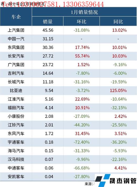 免責(zé)聲明:本網(wǎng)站(山東聊城晟杰無縫鋼管廠m.51pvc.cn)刊載的“1月我國汽車產(chǎn)銷降幅明顯,多數(shù)車企呈現(xiàn)雙位數(shù)下跌”等均源于網(wǎng)絡(luò),版權(quán)歸原作者所有,且僅代表原作者觀點(diǎn),本文所載信息僅供參考。轉(zhuǎn)載僅為學(xué)習(xí)與交流之目的,如無意中侵犯您的合法權(quán)益,請及時(shí)聯(lián)系刪除。本網(wǎng)站刊登此篇文章并不意味著本站贊同其觀點(diǎn)或證實(shí)其內(nèi)容的真實(shí)性,我們不對其科學(xué)性、嚴(yán)肅性等作任何形式的保證。如果侵犯了您的版權(quán),請盡快聯(lián)系我們予以撤銷,謝謝合作!