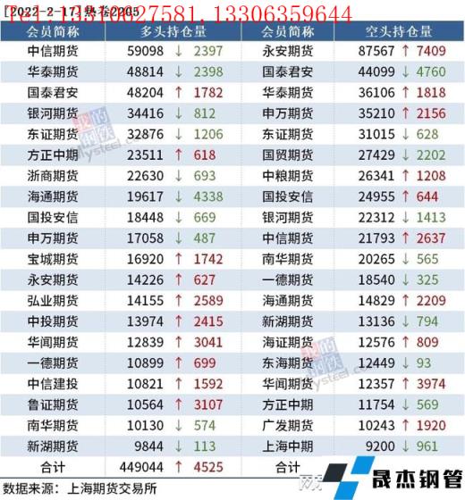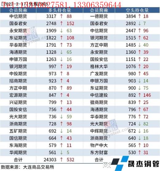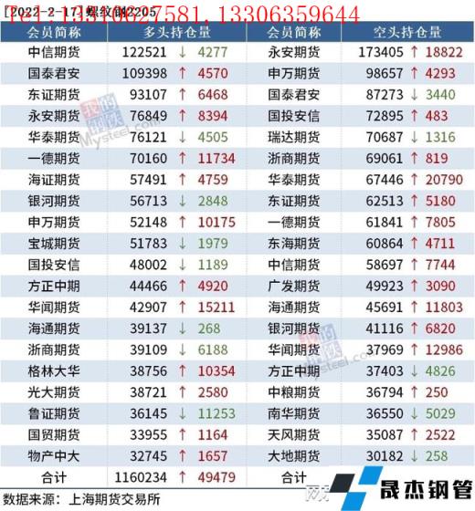 截至2月17日收盤,螺紋鋼2205收4686元/噸,跌1.97%;熱卷2205收4823元/噸,跌1.49%;鐵礦石2205收684.5元/噸,跌3.79%。