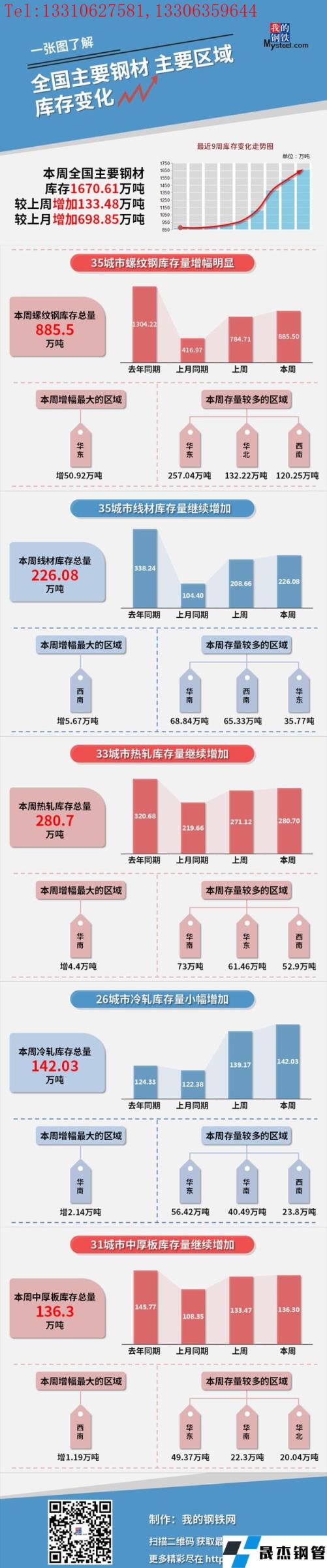 本周,全國(guó)主要厚壁無(wú)縫鋼管社會(huì)庫(kù)存1670.61萬(wàn)噸,較上周增加133.48萬(wàn)噸,較上月增加698.85萬(wàn)噸;螺紋鋼庫(kù)存總量885.5萬(wàn)噸。
