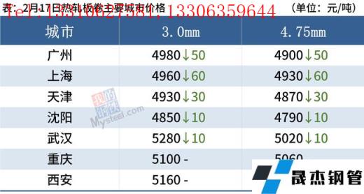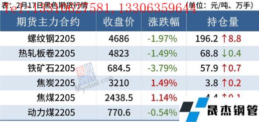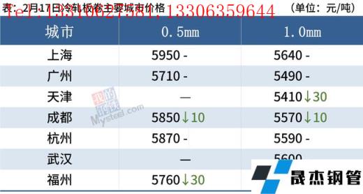 冷軋板卷:2月17日,全國24個主要城市1.0mm冷卷均價5573元/噸,較上個交易日下跌7元/噸。今日黑色系期貨盤面整體震蕩偏弱運行,市場心態下滑,近兩日現貨市場價格均陸續回落,再加上市場“買漲不買跌”的情緒居高不下,今日整體成交一般。庫存方面,據不完全統計,現冷軋無縫厚壁鋼管廠家庫存40.94萬噸,周環比減少2.77萬噸,社會庫存142.03萬噸,周環比增加2.86萬噸,周消費量80.71萬噸,環比增加13.02萬噸。綜合來看,故預計18日國內冷軋板卷價格或將穩中偏弱運行。