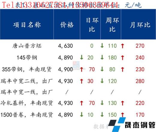 今日唐山管帶價(jià)格漲跌互現(xiàn),其中355帶鋼價(jià)格較上一交易日漲70元/噸,145帶鋼較上一交易日跌20元/噸,管材價(jià)格暫且持穩(wěn)。市場(chǎng)成交增量。