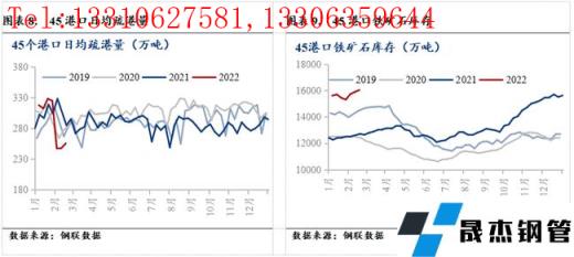 自2021年11月中旬以來,鐵礦石價格上漲400元/噸,漲幅達69.32%;相應(yīng)的高爐開工率下降2.15%。市場普遍認為鐵礦石價格上漲偏離實際基本面情況,疊加2月15日鐵礦石迎來強監(jiān)管,鐵礦石價格出現(xiàn)回落。2月18日,本周五鐵礦石價格820元/噸,較上周下跌133元/濕噸。鐵礦石價格下跌從兩個方面影響厚壁無縫鋼管價格:A、厚壁無縫鋼管成本下移,厚壁無縫鋼管支撐減弱;B、扭轉(zhuǎn)黑色產(chǎn)業(yè)鏈偏樂觀的市場情緒,降低厚壁無縫鋼管追漲的風(fēng)險偏好,從而帶動厚壁無縫鋼管價格下跌。