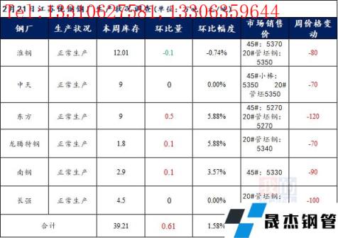 江蘇優特無縫厚壁鋼管廠家棒材總庫存39.21萬噸,較上周上升0.61萬噸,環比增1.58%,較去年同期下降8.3萬噸,同比降17.47%,目前江蘇優特無縫厚壁鋼管廠家均正常生產。