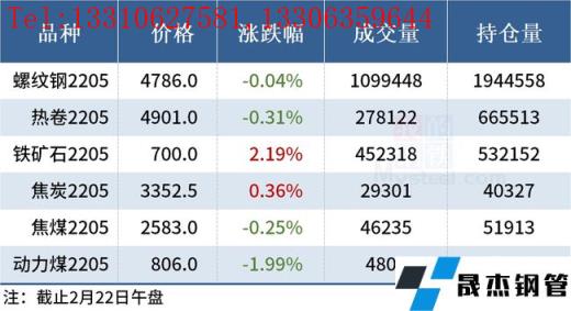 免責聲明:本網站(山東聊城晟杰無縫鋼管廠m.51pvc.cn)刊載的“2022年02月22日午報:鋼價多數上漲,黑色期貨高開低走”等均源于網絡,版權歸原作者所有,且僅代表原作者觀點,本文所載信息僅供參考。轉載僅為學習與交流之目的,如無意中侵犯您的合法權益,請及時聯系刪除。本網站刊登此篇文章并不意味著本站贊同其觀點或證實其內容的真實性,我們不對其科學性、嚴肅性等作任何形式的保證。如果侵犯了您的版權,請盡快聯系我們予以撤銷,謝謝合作!