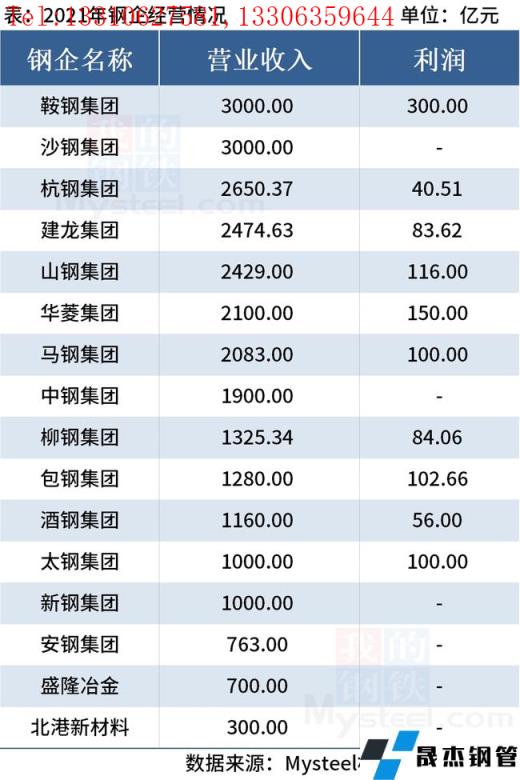 免責聲明:本網站(山東聊城晟杰無縫鋼管廠m.51pvc.cn)刊載的“16家鋼企2021年營收超2.7萬億元”等均源于網絡,版權歸原作者所有,且僅代表原作者觀點,本文所載信息僅供參考。轉載僅為學習與交流之目的,如無意中侵犯您的合法權益,請及時聯系刪除。本網站刊登此篇文章并不意味著本站贊同其觀點或證實其內容的真實性,我們不對其科學性、嚴肅性等作任何形式的保證。如果侵犯了您的版權,請盡快聯系我們予以撤銷,謝謝合作!