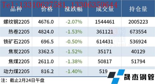 免責聲明:本網站(山東聊城晟杰無縫鋼管廠m.51pvc.cn)刊載的“2022年02月24日午報:鋼價多數下跌,黑色期貨全線飄綠”等均源于網絡,版權歸原作者所有,且僅代表原作者觀點,本文所載信息僅供參考。轉載僅為學習與交流之目的,如無意中侵犯您的合法權益,請及時聯系刪除。本網站刊登此篇文章并不意味著本站贊同其觀點或證實其內容的真實性,我們不對其科學性、嚴肅性等作任何形式的保證。如果侵犯了您的版權,請盡快聯系我們予以撤銷,謝謝合作!