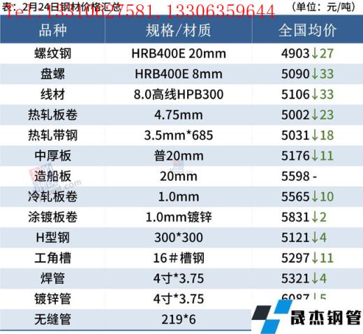 建筑厚壁無縫鋼管:2月24日,全國31個主要城市20mm三級抗震螺紋鋼均價4903元/噸,較上個交易日跌9元/噸。短期來看,一方面當(dāng)前國際形勢緊張,導(dǎo)致市場情緒偏空;另一方面,近期鐵礦等原料價格下挫,拖累成材價格,加上近期需求恢復(fù)不及預(yù)期,短期仍然處于供需雙弱格局。因此預(yù)計25日國內(nèi)建筑厚壁無縫鋼管或?qū)⒕S持弱勢運行。