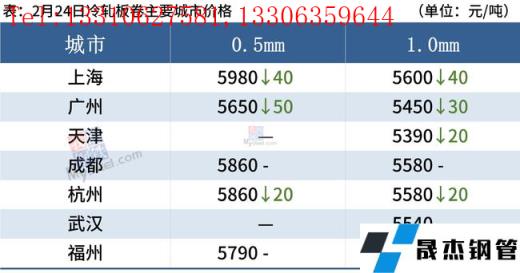 冷軋板卷:2月24日,全國24個主要城市1.0mm冷卷均價5565元/噸,較上個交易日下跌10元/噸。黑色系期貨盤面整體偏弱運行,多數(shù)商家觀望情緒濃厚,成交表現(xiàn)偏差。部分地區(qū)貿(mào)易商表示,目前庫存仍處于較高位,基于3月份訂貨壓力,市場價格普遍存在議價空間。庫存方面,據(jù)不完全統(tǒng)計,現(xiàn)冷軋無縫厚壁鋼管廠家?guī)齑?8.86萬噸,周環(huán)比減少2.08萬噸,社會庫存144.27萬噸,周環(huán)比增加2.24萬噸,周消費量81.60萬噸,環(huán)比增加0.8萬噸。綜合來看,故預(yù)計25日國內(nèi)冷軋板卷價格或?qū)⒎€(wěn)中偏弱運行。