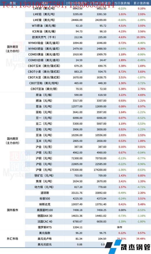 免責(zé)聲明:本網(wǎng)站(山東聊城晟杰無(wú)縫鋼管廠m.51pvc.cn)刊載的“受近期局勢(shì)影響大宗商品價(jià)格一覽表(2月28日)”等均源于網(wǎng)絡(luò),版權(quán)歸原作者所有,且僅代表原作者觀點(diǎn),本文所載信息僅供參考。轉(zhuǎn)載僅為學(xué)習(xí)與交流之目的,如無(wú)意中侵犯您的合法權(quán)益,請(qǐng)及時(shí)聯(lián)系刪除。本網(wǎng)站刊登此篇文章并不意味著本站贊同其觀點(diǎn)或證實(shí)其內(nèi)容的真實(shí)性,我們不對(duì)其科學(xué)性、嚴(yán)肅性等作任何形式的保證。如果侵犯了您的版權(quán),請(qǐng)盡快聯(lián)系我們予以撤銷,謝謝合作!