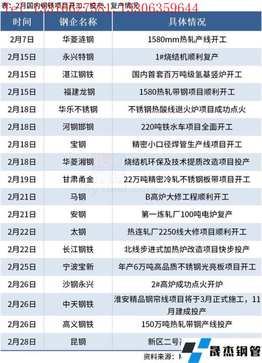 免責聲明:本網站(山東聊城晟杰無縫鋼管廠m.51pvc.cn)刊載的“2月國內18個鋼鐵項目開工、投產和復產”等均源于網絡,版權歸原作者所有,且僅代表原作者觀點,本文所載信息僅供參考。轉載僅為學習與交流之目的,如無意中侵犯您的合法權益,請及時聯系刪除。本網站刊登此篇文章并不意味著本站贊同其觀點或證實其內容的真實性,我們不對其科學性、嚴肅性等作任何形式的保證。如果侵犯了您的版權,請盡快聯系我們予以撤銷,謝謝合作!