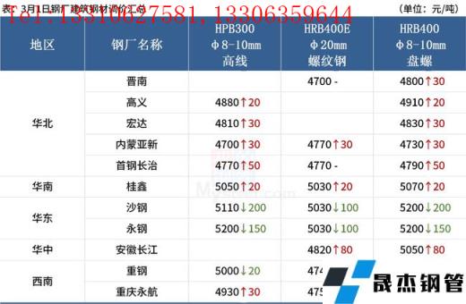 ◎ 首鋼京唐計劃于3月2日對一條1580mm熱軋生產(chǎn)線做檢修,為期11天,總影響產(chǎn)量約在11萬噸左右;并預計于3月3日對一座5500m3高爐進行檢修至3月7日結束,為期5天左右,影響鐵水產(chǎn)量總計在6萬噸左右;此外還計劃于3月2日對酸連軋生產(chǎn)線做檢修,為期8天,總影響產(chǎn)量約在5萬噸左右。