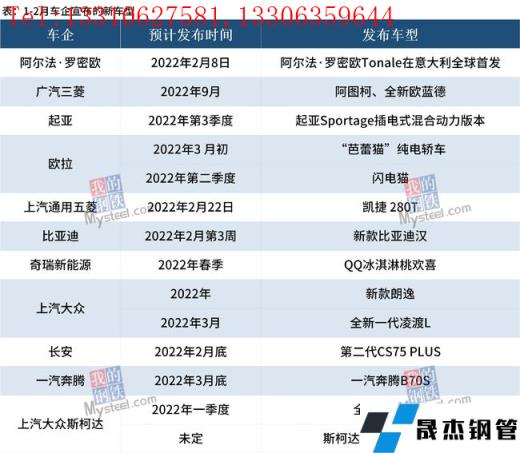 免責聲明:本網站(山東聊城晟杰無縫鋼管廠m.51pvc.cn)刊載的“1-2月19家車企發布新車型規劃”等均源于網絡,版權歸原作者所有,且僅代表原作者觀點,本文所載信息僅供參考。轉載僅為學習與交流之目的,如無意中侵犯您的合法權益,請及時聯系刪除。本網站刊登此篇文章并不意味著本站贊同其觀點或證實其內容的真實性,我們不對其科學性、嚴肅性等作任何形式的保證。如果侵犯了您的版權,請盡快聯系我們予以撤銷,謝謝合作!