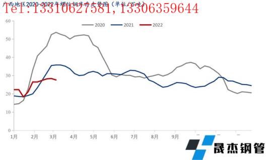 圖表二:廣西地區螺紋鋼庫存走勢圖