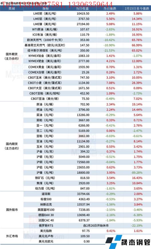 免責聲明:本網站(山東聊城晟杰無縫鋼管廠m.51pvc.cn)刊載的“受近期局勢影響大宗商品價格一覽表(3月3日)”等均源于網絡,版權歸原作者所有,且僅代表原作者觀點,本文所載信息僅供參考。轉載僅為學習與交流之目的,如無意中侵犯您的合法權益,請及時聯系刪除。本網站刊登此篇文章并不意味著本站贊同其觀點或證實其內容的真實性,我們不對其科學性、嚴肅性等作任何形式的保證。如果侵犯了您的版權,請盡快聯系我們予以撤銷,謝謝合作!