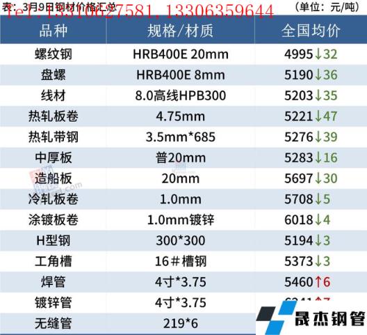 建筑厚壁無縫鋼管:3月9日,全國31個主要城市20mm三級抗震螺紋鋼均價4995元/噸,較上個交易日跌32元/噸。綜合來看,需求方面,目前下游工程項(xiàng)目資金情況尚未有明顯好轉(zhuǎn),采購剛需為主,市場投機(jī)情緒降溫后,整體成交表現(xiàn)較為一般。而期貨市場的波動影響市場心態(tài),因此預(yù)計(jì)10日國內(nèi)建筑厚壁無縫鋼管價格將繼續(xù)弱勢震蕩運(yùn)行。