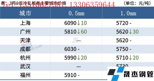 冷軋板卷:3月9日,全國24個主要城市1.0mm冷卷均價5708元/噸,較上個交易日下跌5元/噸。隨著黑色系震蕩走弱,市場價格步入下行通道,廣州、南昌、杭州等地率先下調(diào)價格,其余市場則多暗降出貨。下游“買漲不買跌”心態(tài)明顯,多持觀望態(tài)度,謹(jǐn)慎拿貨。綜合來看,故預(yù)計(jì)10日國內(nèi)冷軋板卷價格或?qū)⒗^續(xù)偏弱運(yùn)行。